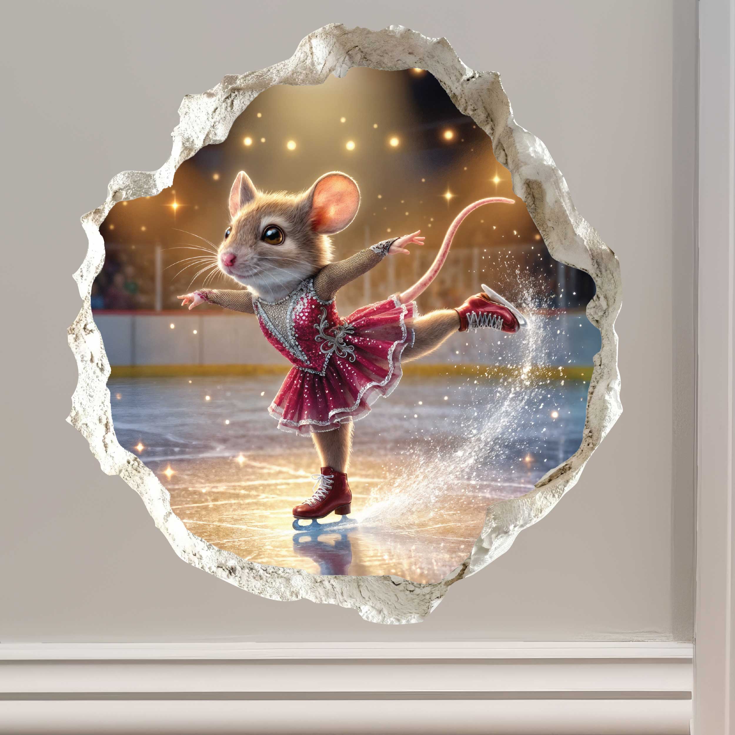 - Figure Skating Mouse Hole Decal: 4.6" wide x 4.8" high