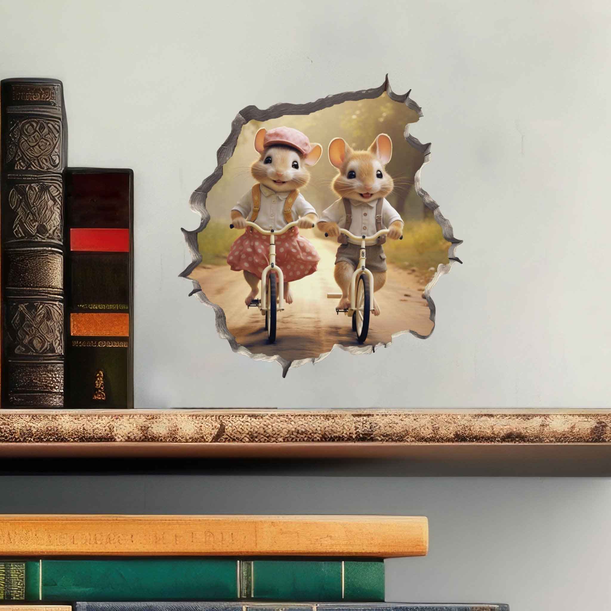 They’re high-quality vinyl decals designed to look like little “holes” in your wall, revealing whimsical scenes—like mice reading books, gnomes peeking out, or dragons hiding in shadows.